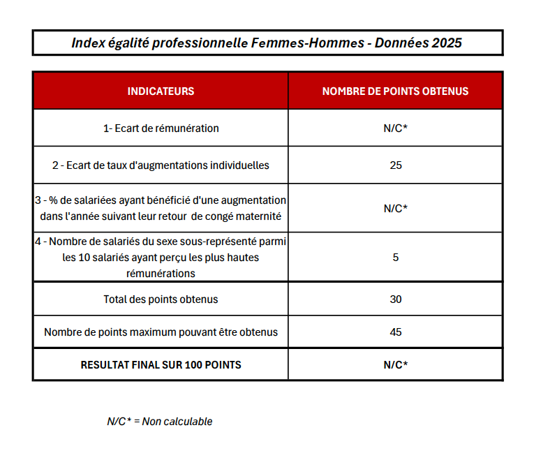 Nous nous engageons en faveur d'une politique sociale visant à promouvoir l'égalité femmes/hommes au même titre que l'égalité des chances. À ce titre, nous publions nos Index Égalité F/H chaque année.